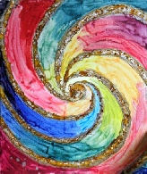 Ort: Haus der Eigenarbeit, die Vitrine im Café zeigte für 2 Monate meinen Strickschmuck, auch als Anregung für die Kursteilnehmerinnen.
