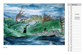 Zuerst Krimi + Bild in in A4, 2012 ein Broschürenkalender, der geschlossen noch A4 hatte, aus dem aber aufgehängt mit beiden Seiten A3 entstand.