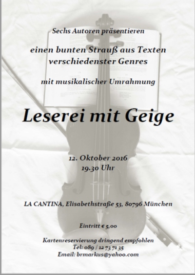 So schnell ändert es sich. Die nächste Lesung, an der ich teilnehme: Leserei mit Geige