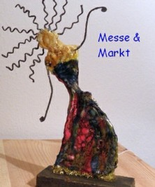 Von mir gibt es dort Encaustic (Bilder, Figuren, Gegenstände und auf Stoff) und Schmuck (aus Silber, Alu, Gewebebändern) gefädelt, geschmiedet gestrickt und gehäkelt.